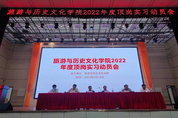 2022年6月18日下午,在博古大礼堂召开了2019级、2020级旅游管理、酒店管理专业学生顶岗实习线上线下动员会。按照专业人才培养方案,2019级、2020级旅游管理、酒店管理专业学生将于2022年6月底7月初将赴北京首旅集团旗下酒店、上海迪士尼度假区、杭州开元森泊乐园、万豪旗下酒店进行顶岗实习。动员大会由副院长黄国萍主持,院领导班子及指导教师参加了动员会。