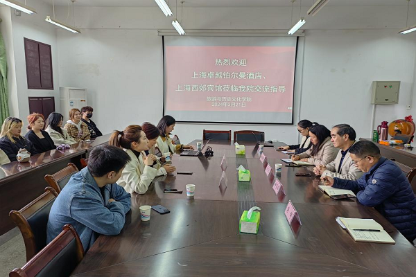 3月21日,上海卓越铂尔曼大酒店、上海西郊宾馆相关负责人一行4人赴2138CC太阳集团交流访问,院党委书记程晓丽、酒店管理专业教师和学生代表参加座谈。