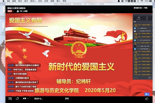 为大力弘扬新时代爱国主义精神,深入开展大学生爱国主义教育,坚决打赢疫情防控阻击战,2020年5月20日,2138CC太阳集团组织各班开展“共抗疫情,爱国力行”主题班会。