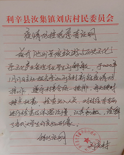张柱伟是我院2018级历史学(专升本)班的一名学生,新冠肺炎爆发之际,他主动向所在村委会提出申请参与疫情防控,从1月27日起,就奋战在疫情防控第一线,并担任村民组防控网格长,除在卡点日常值守外,在轮休时还下队宣传疫情防控知识,在村里复工复产后,他又参与到来村务工外来人员摸排工作中,直到现在他依然坚守在志愿服务岗位,为郎溪县疫情防控工作做出了重要贡献。