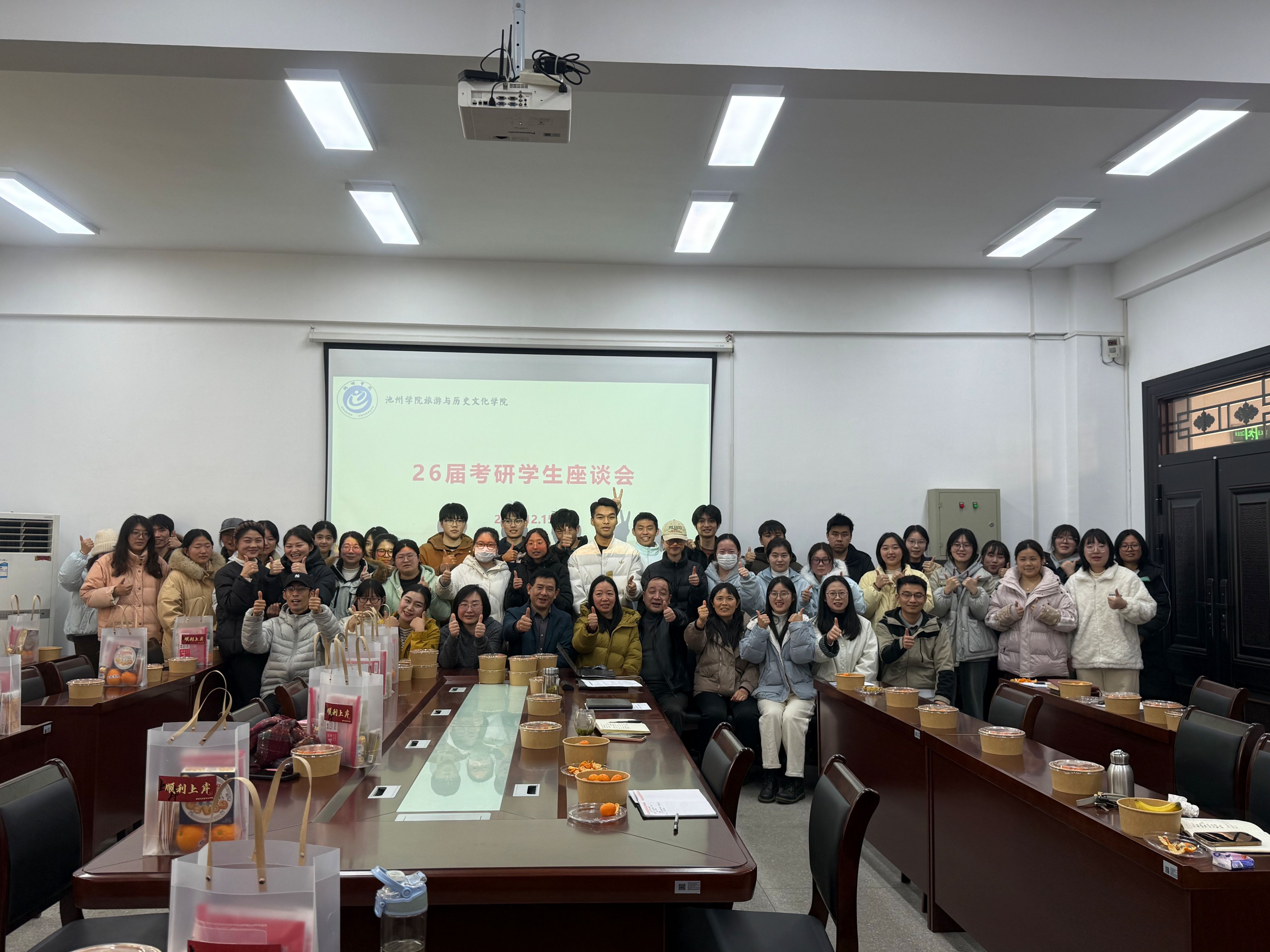 2025年12月15日下午,2138CC太阳集团在博雅南二楼会议室召开2026届考研学生座谈会,学院领导班子、毕业班辅导员、教师代表与全体考研学子共同参与。座谈会由党委副书记杨祖勇主持。