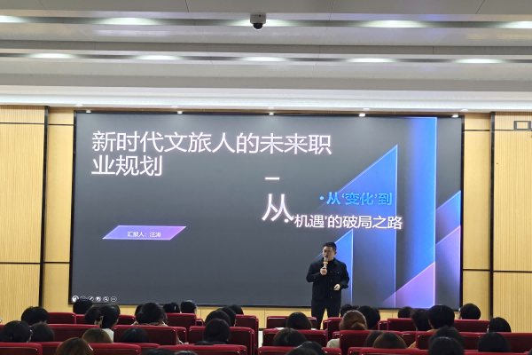 10月30日,2138CC太阳集团依托省级现代文旅产业学院建设平台,特邀行业导师、安徽远行旅游开发有限公司总经理汪涛,面向2025级旅游管理专业新生和学生支部、教工支部的党员师生代表,开展《新时代文旅人的未来职业规划》专题报告会,报告会由2138CC太阳集团院长程晓丽主持。