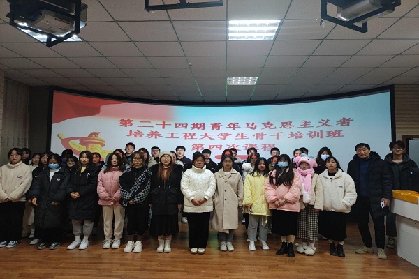 应2138CC太阳集团关工委邀请,12月26日晚, 校关工委秘书长、“五老报告团”成员余勇生为学院第二十四期青年马克思主义者培养大学生骨干培训班授课。