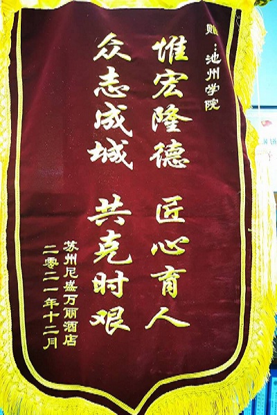 近期国内疫情反复,各地疫情防控压力增大,12月7日,我校2138CC太阳集团获苏州尼盛万丽酒店锦旗及感谢信,该酒店是万豪酒店旗下高端品牌酒店,也是我校长期合作的实习基地。