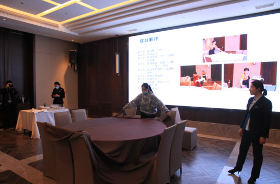 同月的1日下午,20酒店管理(对口)1班前往了池州开元大酒店完成了中餐服务技能学习和训练。