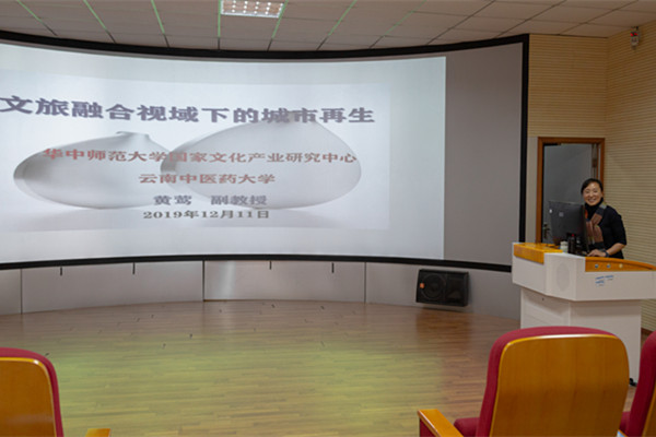 12月11日下午,云南中医药大学副教授、华中师范大学国家文化产业研究中心黄莺博士应邀来我院作了题为“文旅融合视域下的城市更新”的学术讲座,全院140余名师生聆听了学术讲座。讲座由文化产业管理教研室主任吴琼老师主持。