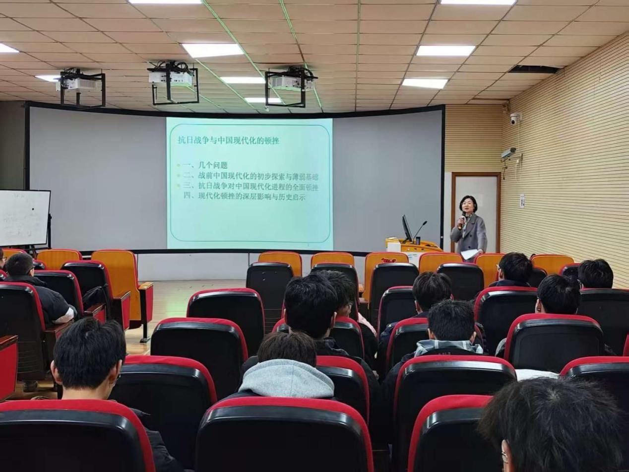 12月10日,胡惠芳教授为学院2025级历史学(专升本)学生主讲“抗日战争与中国现代化的顿挫”学术讲座。讲座以现代化转型为视角,贯通历史与现实,深入阐释了抗日战争对中国发展道路的深远影响。在场学生表示,讲座脉络清晰、见解独到,不仅加深了大家对中国现代化历程复杂性的理解,也激发起探究历史与现实联系的思想热情,收获深刻。