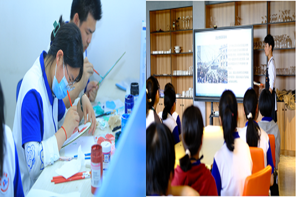 同学们在非遗创客实验室参加了传统工艺生产劳动——团扇制作。杨春艳老师带领三位学生志愿者,为同学们介绍了中国汉族传统工艺品及艺术品——团扇蕴含的中华优秀传统文化和美好寓意,详细讲解了团扇的制作流程和注意事项,指导每位同学完成了一幅作品。同学们精描细画,透过一把小小的方寸美扇,领略了璀璨而绵长的中国扇文化,体悟了传统工艺技艺中蕴含的精益求精等工匠精神。