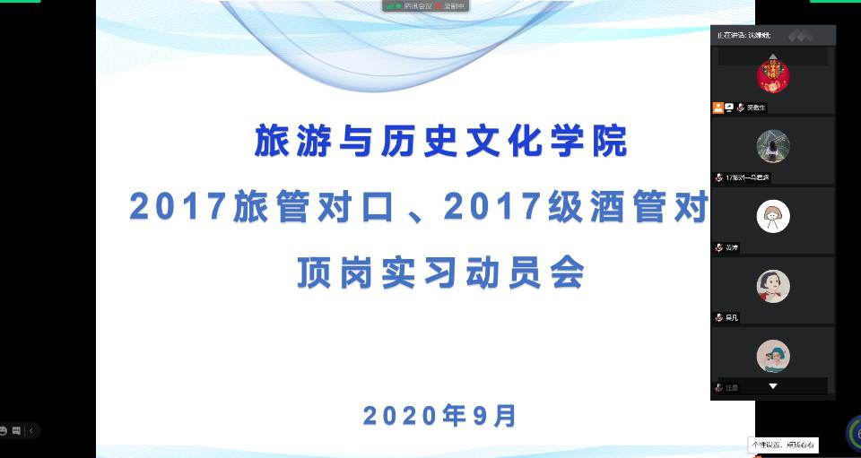 为避免人员流动、聚集带来的疫情风险,学院要求实习单位采取线上与学生进行双选,并于9月14日下午通过腾讯会议召开线上顶岗实习动员会。动员会上桂百桢副书记强调了实习纪律及安全;胡文海院长重点强调了实习期间疫情防控要求,要求实习生在做好常态化疫情防控的前提下圆满完成实习任务,答好疫情防控和顶岗实习两份答卷。