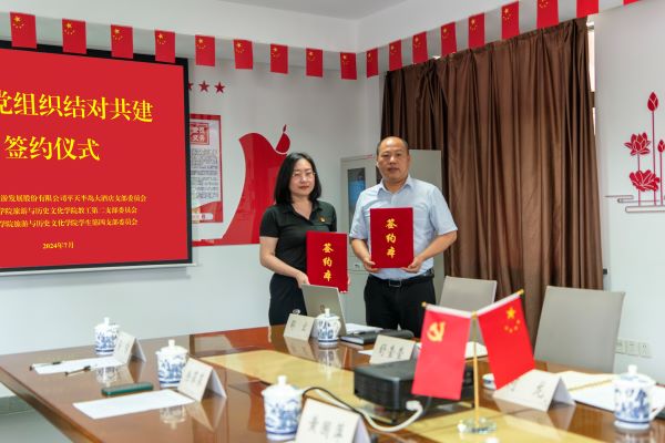 仪式上,学院教工第二党支部、学生第四党支部和九华旅游平天半岛大酒店党支部书记分别介绍了各自支部情况、党建工作开展及特色做法,并就共建机制的优化、合作内容的深化及合作领域的拓展等内容进行了深入交流。大家一致认为,通过党建结对共建,可以搭建起更加紧密的合作桥梁,实现资源共享、优势互补,共同推动党建工作和业务工作的深度融合。